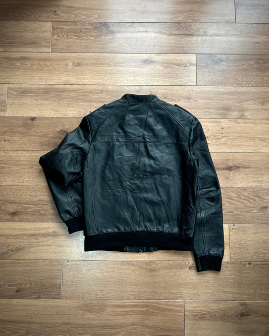 deacon black leather bomber jacket (M).