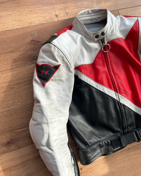 dainese black white & red leather logo set (S).
