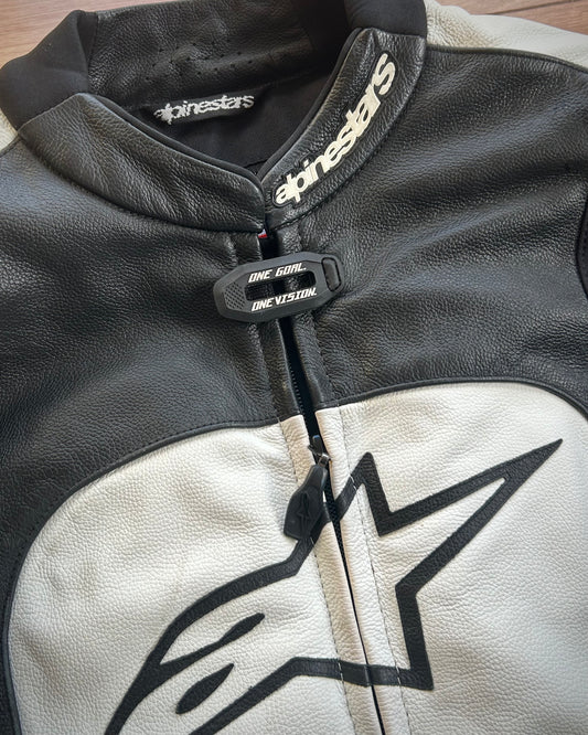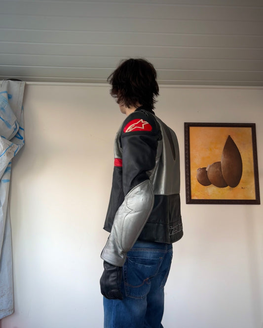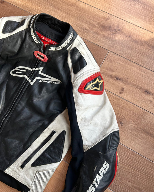 alpinestars black white & red leather moto jacket (S).