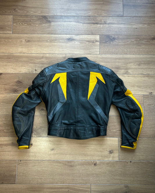 figo uk black & yellow leather padded biker jacket (S).