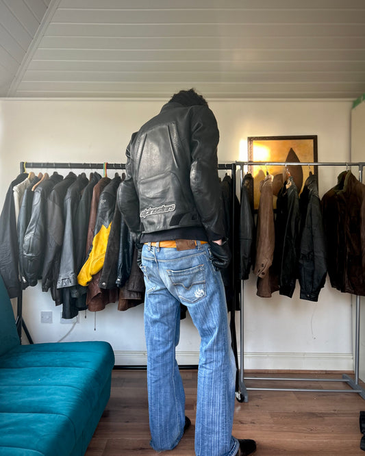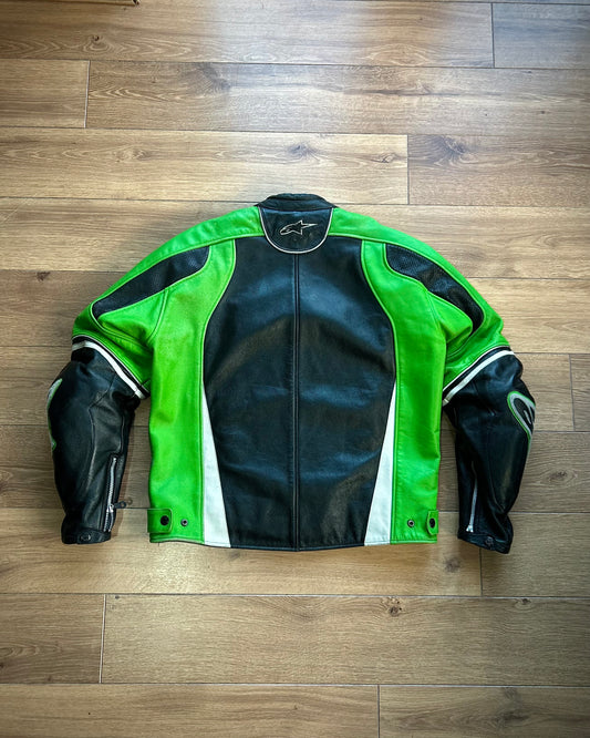 (rare) alpinestars green and black leather biker jacket (L).