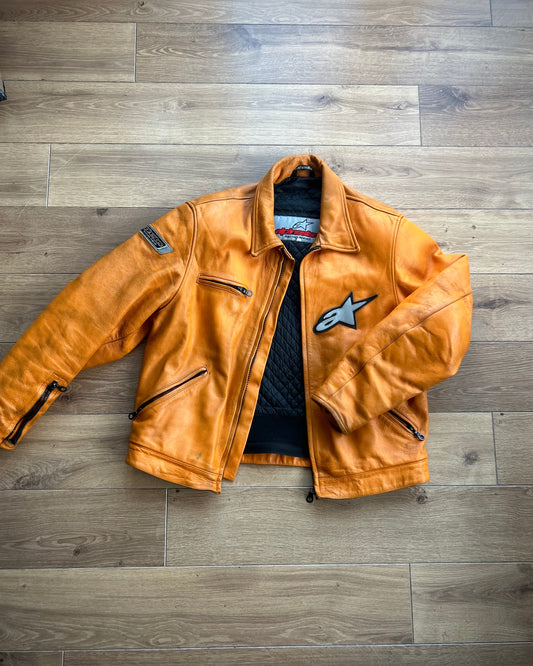 (90’s) alpinestars orange leather biker jacket (L).