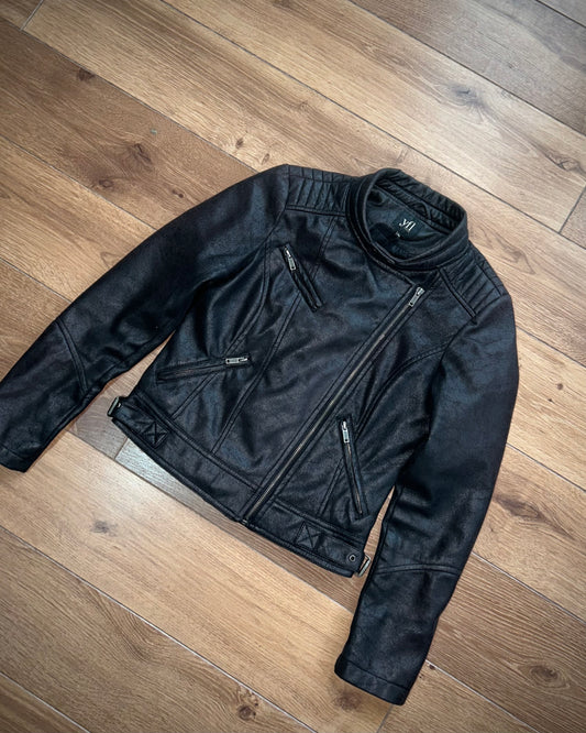 ridelucci super wide leg black waxed denim. 100% cotton.